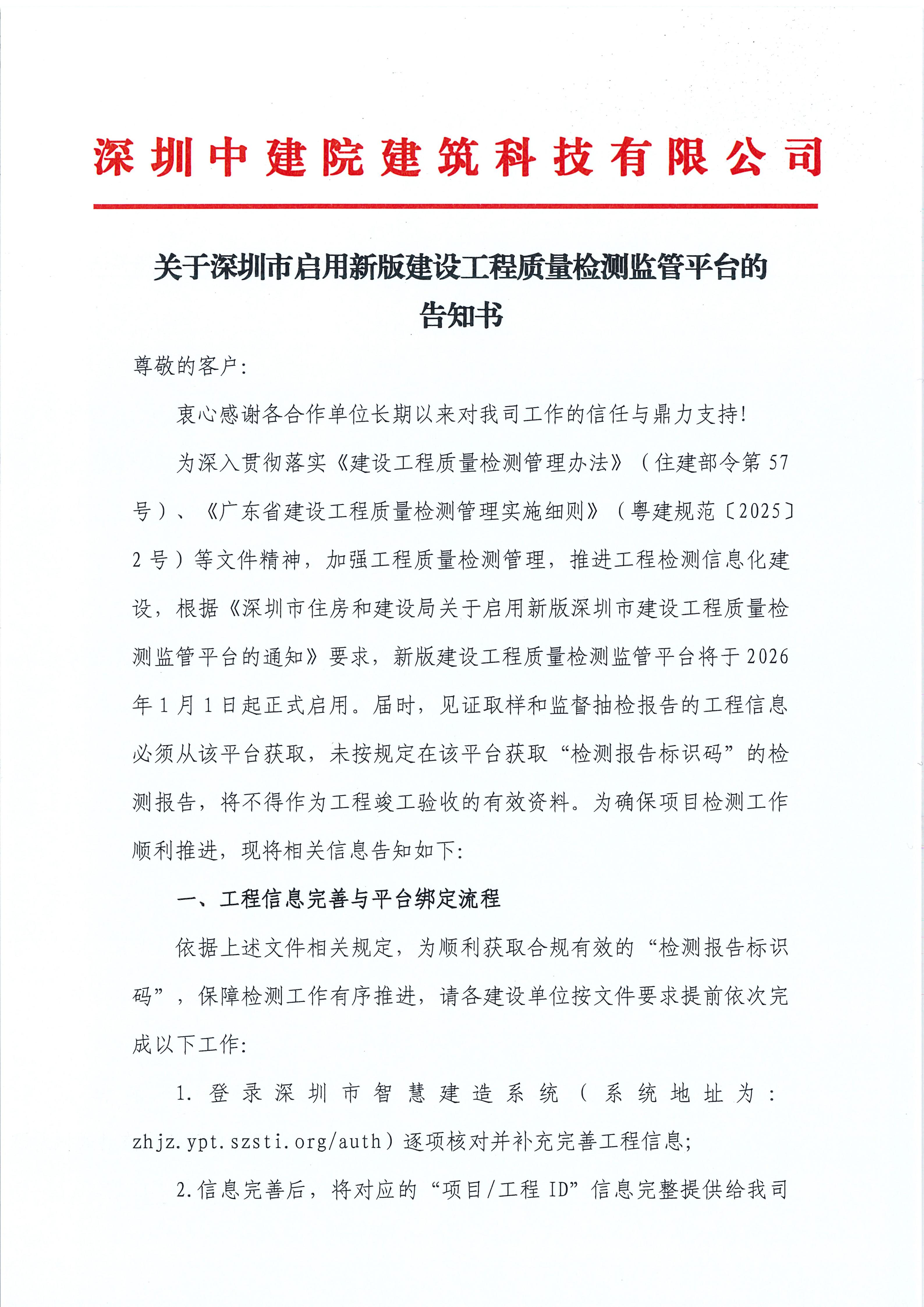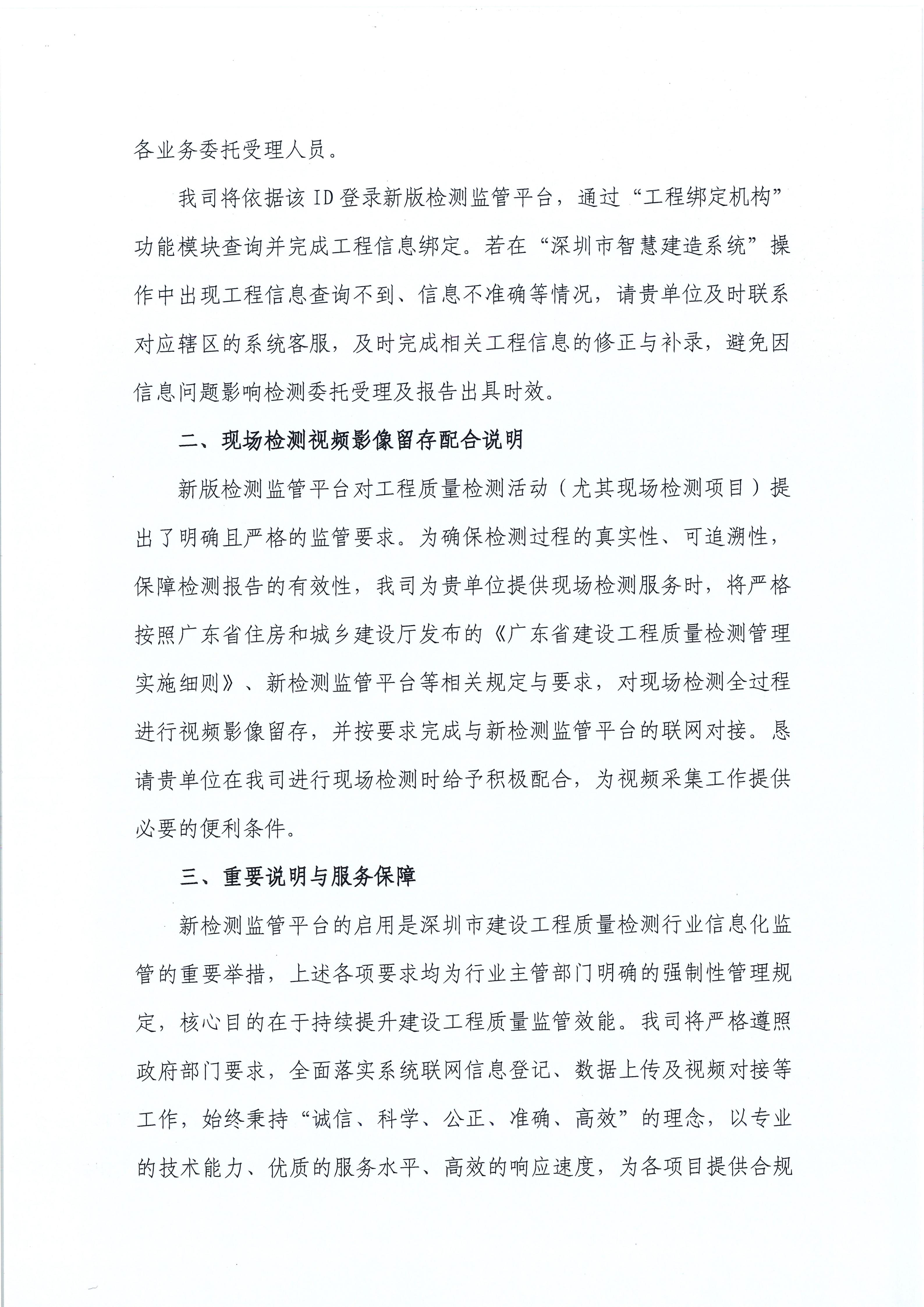 關(guān)于深圳市啟用新版建設(shè)工程質(zhì)量檢測(cè)監(jiān)管平臺(tái)的告知書